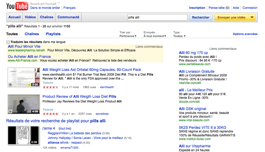 A l’occasion d’une recherche sur les nouvelles pilules Alli j’ai découvert des liens publicitaires sur le réseau Youtube. En fait j’avais déjà croisé de la pub, notamment pour iTunes, mais dans les vidéos.